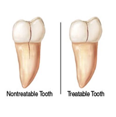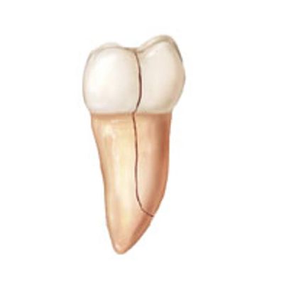 A split tooth is often the result of the long term progression of a cracked tooth. The split tooth is identified by a crack with distinct segments that can be separated. A split tooth cannot be saved intact. The position and extent of the crack, however, will determine whether any portion of the tooth can be saved. In some cases, endodontic treatment may be performed to save a portion of the tooth.