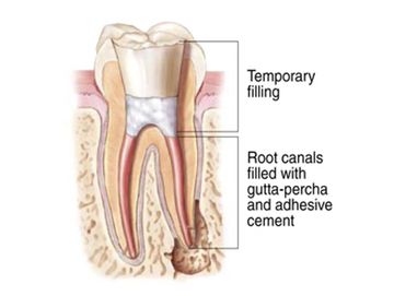 Once the space is cleaned and shaped, the root canal is filled with a biocompatible substance called “gutta-percha.” This rubber-like material, along with adhesive cement, is placed in the space to ensure complete sealing of the root canal.