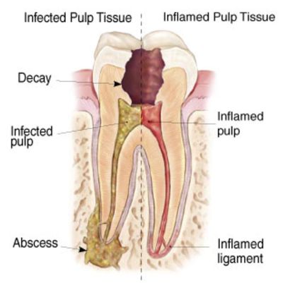 An injury to a tooth may also cause pulp damage even if the tooth has no visible chips or cracks. If pulp inflammation or infection is left untreated, it can cause pain or lead to an abscess, which may result in tooth loss.